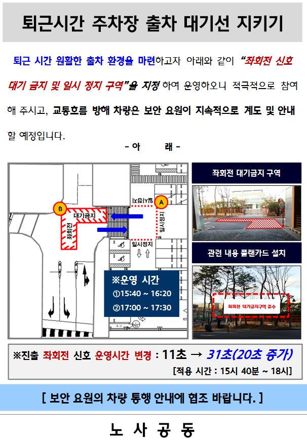 회사 진입 및 출차시 좌회전 시간 변경(2018년 3월 21일 시행)